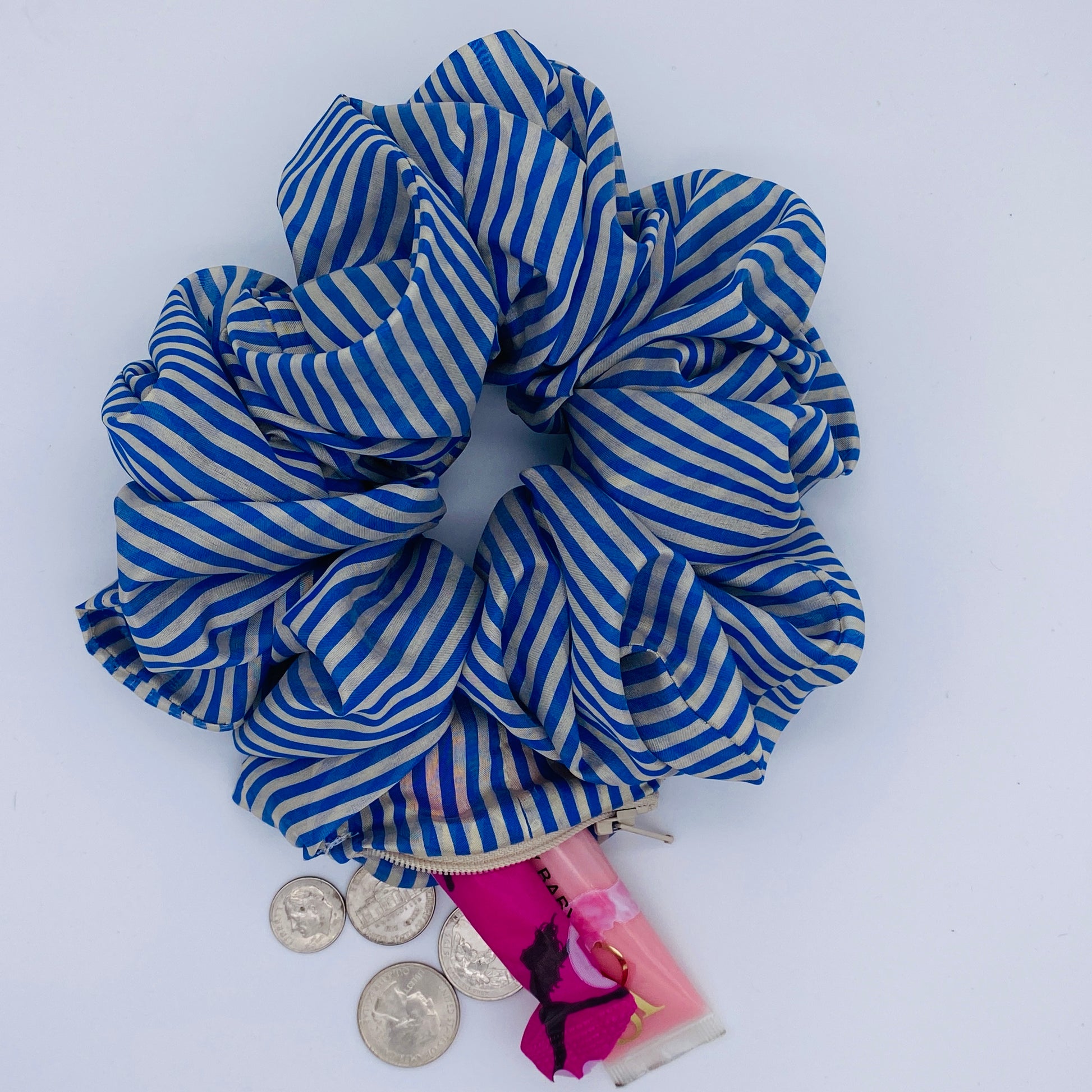 This handmade scrunchie with a pocket better known as "The Pocket Scrunchie" is the perfect way to add a little extra convenience to your life. The pocket scrunchie is made from high-quality, durable satin material and is securely attached to the scrunchie. You can easily slip small items, like money, cards, or keys, into the pocket, so you don't have to worry about carrying them in your pockets or purse. The pocket scrunchie consists of a comfortable material to prevent any irritation or chafing on the skin.