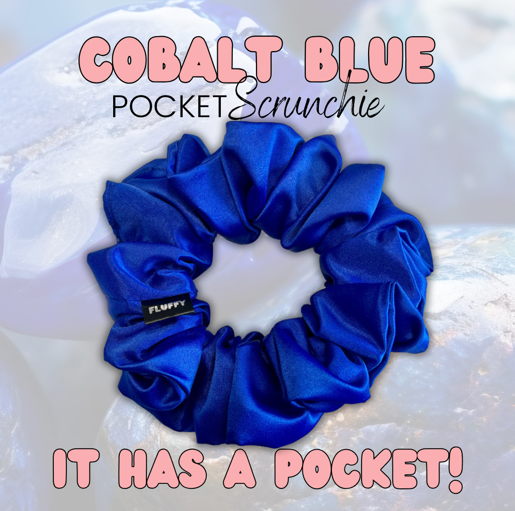 Cobalt Blue Satin Pocket Scrunchie